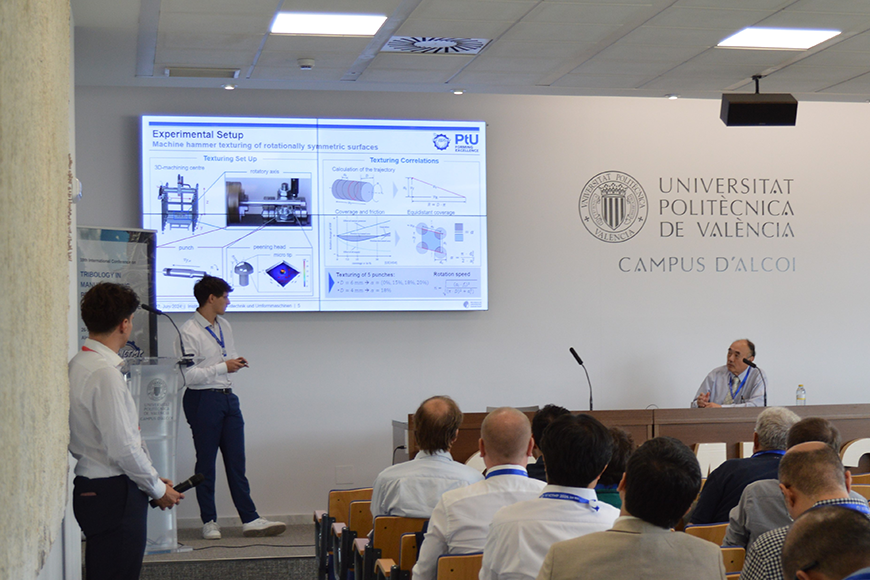 The 10th International Conference of Tribology in Manufacturing Processes & Advanced Surface Engineering (ICTMP) took place in sunny Alcoy from June 26 to 28. The PtU was represented on site by Prof. Groche and two research assistants with presentations from the field of sheet metal and bulk metal forming. Christoph Kuhn presented a paper on thermochromic indicators for in-situ process monitoring during cold forward extrusion. Philipp Schumann presented current results on the texturing of blanking punches using machine hammer peening with the aim of increasing tool life. The publications were awarded 2nd and 3rd place in the Best Paper Award. Our congratulations!
